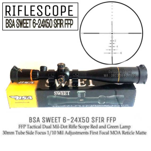 Telescope BSA SWEET 6-24X50 SFIR FFP Tube 30 Reticle Glass Green Coating Lens Optic - Teleskop BSA | Shopee Indonesia